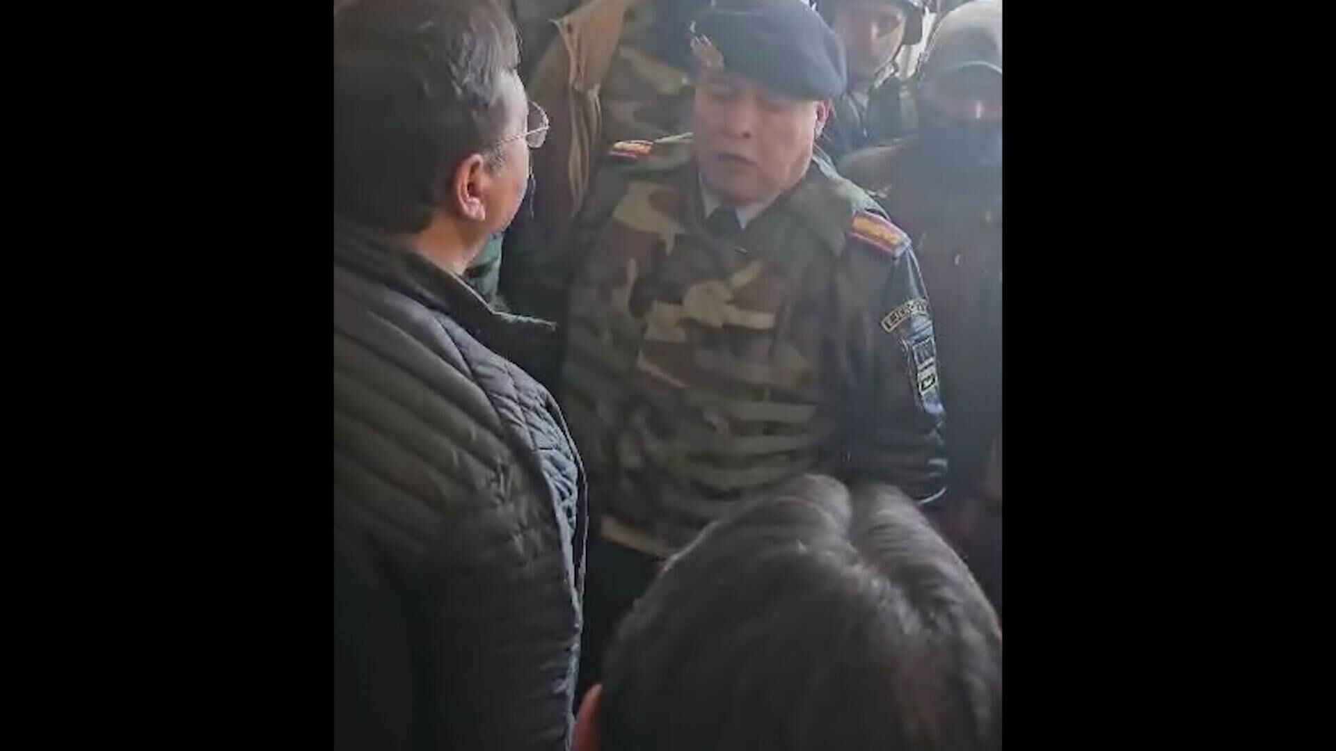 ЛА-ПАС, 27 июн – РИА Новости. Президент Боливии Луис Арсе лично провел переговоры с генералом Хуаном Хосе Сунигой, возглавившим попытку госпереворота в Боливии – видео их встречи лицом к лицу оказалось в распоряжении РИА Новости. Встреча состоялась во дворце в Ла-Пасе еще до того, как Арсе обратился к нации и назначил новое военное руководство. Затем было объявлено об аресте Суниги. На видео показано, что обстановка в помещении, где скопилось много людей, очень напряжённая. Присутствующие периодически переходят на крик и заглушают диалог президента и генерала.На видео Арсе приказывает военным вернуться в казармы, те отказываются."Военные сейчас находятся во всех жилых кварталах. ...Уберите их! Это приказ", - заявил Арсе.В среду боливийские СМИ сообщили о скоплении военных на площади Мурильо в Ла-Пасе, где расположены правительственные здания. На площадь была стянута спецтехника. Военные под руководством генерала Суниги, который, по данным местных СМИ, ранее был уволен с поста командующего армией, попытались с помощью бронетранспортера прорваться в президентский дворец. Лидер Боливии Арсе призвал к соблюдению демократии и назвал происходящее попыткой госпереворота. В его поддержку выступили главы многих иностранных государств. Беспорядки на площади Ла-Паса продлились около трех часов. Все это время президент находился внутри дворца. Он выступил с обращением к нации и назначил новое командование армии, которое призвало военных покинуть площадь. Солдаты выполнили приказ. Генерал Сунига и ещё два военачальника были арестованы. В результате попытки переворота пострадали девять человек.