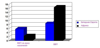 Посмотрите наэту картинку,отображающую рост ВВП с1913 по2003 гг. вЗападной Европе иАфрике.
