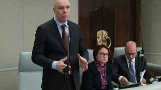 Министр финансов Антон Силуанов (растопырил руки) продолжает грамотно управлять госдолгом,а вот председательница ЦБ Эльвира Набиуллина вынуждена принимать меры против собственной же денежной политики