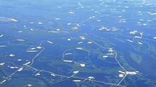Нефтепромысел в пойме реки Обь. Югра. 6000 м над Землей