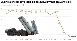 Из-за войны сУкраиной Россия провалилась как экспортер вооружений. Состабильного уровня в 14-15млрд долларов экспорт вооружений снизился более чем напорядок. ВПК по-прежнему рассчитывает наэкспортные контракты инадеется наприостановку или завершение войны,чтобы вернуться навнешние рынки ивосстановить экспортные доходы. НоВПК сократил экспорт,получив засчет этого возможность нарастить производство для российской армии.