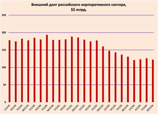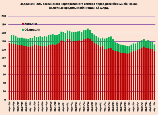 Принимая во внимание то,что Банк России в данном показателе не учитывает кредиты,выданные акционерами своим компаниям,думаю,можно предположить,что не менее 75% от этой суммы было компенсировано наращиванием рублевой задолженности.
