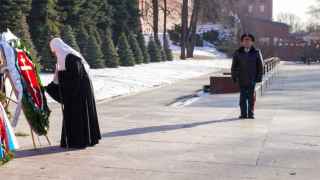 Патриарх Кирилл (возле венка) пока достаточно бодр,но все мы под Богом ходим