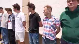 ВАзербайджане задержана группа граждан России,сообщает Report.az соссылкой наМинистерство внутренних дел республики. Поверсии МВД,задержанные входили всостав двух организованных преступных группировок изанимались контрабандой наркотиков изИрана,атакже киберпреступлениями. Наопубликованных Report.az кадрах видно около десяти мужчин,которых жестко конвоируют азербайджанские полицейские. Унекоторых изних видны следы побоев— синяки икровоподтеки налицах.