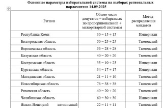 Во всех 11 регионах выборах региональных парламентов 14 сентября сохранилось то же число депутатов и то же соотношение списочной и мажоритарной частей,что и в 2020 году.