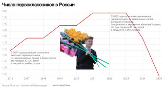 Но с 2023-го года – резкий обвал – Россия потеряла полмиллиона первоклассников,несмотря на все истерические меры правительства по исправлению демографии. И падение,если верить социологам,продолжится.