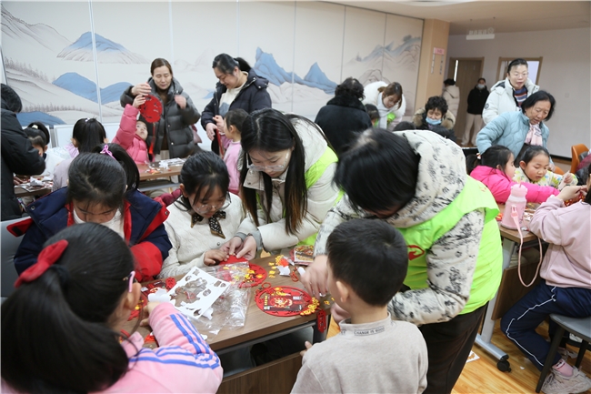 В зоне традиционного ремесла мастера нематериального культурного наследия проводят занятия на месте. Дети особенно любят украшения из бумаги в виде оконных резьб и украшения с изображением знаков зодиака, связанные с годом лошади. В уголке чтения доступны бесплатные книги, создавая тёплую атмосферу совместного чтения с родителями. В зоне раздачи новогодних надписей каллиграфы живо работают на месте: более 300 пар надписей и иероглифов «фу» активно бирают жители, а в воздухе витает аромат чернил и атмосфера праздника.